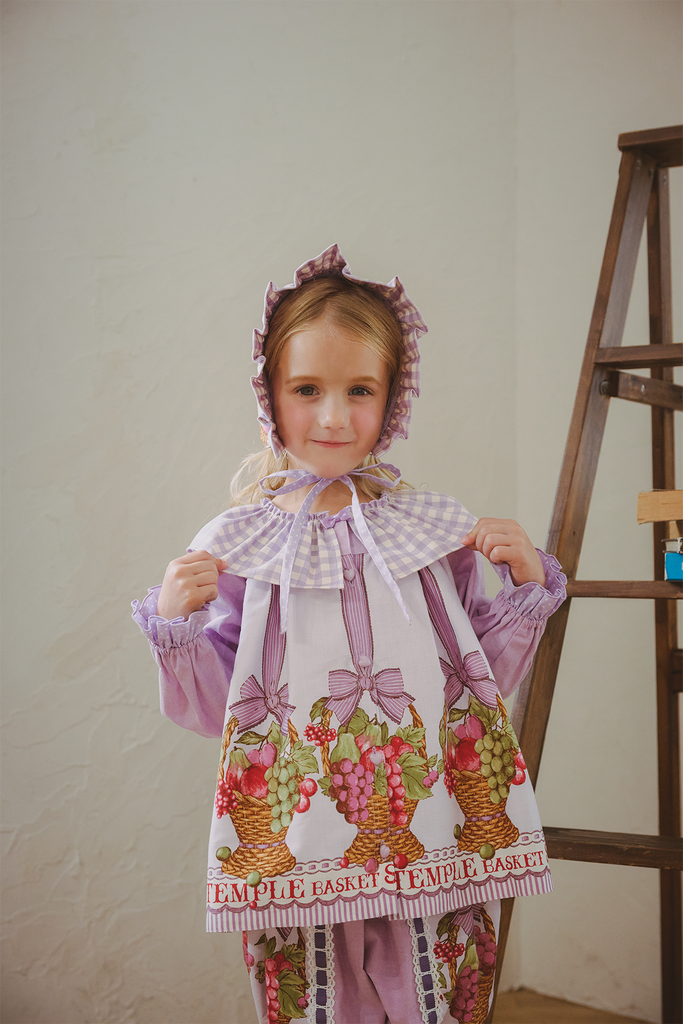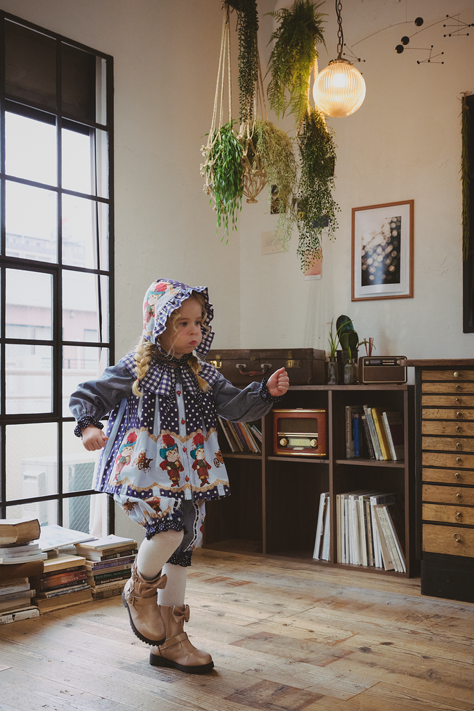 大きな襟はギンガムチェック生地を使用し、よく見るとボタンはコロンと可愛いハート型♡