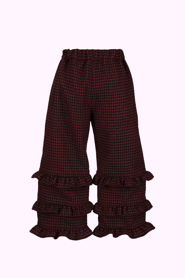 裾の3段フリルで可愛らしく、ガーリーなパンツスタイルを実現してくれます