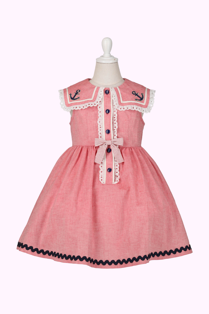 スクエアのセーラー襟にはイカリの刺繍をあしらって、