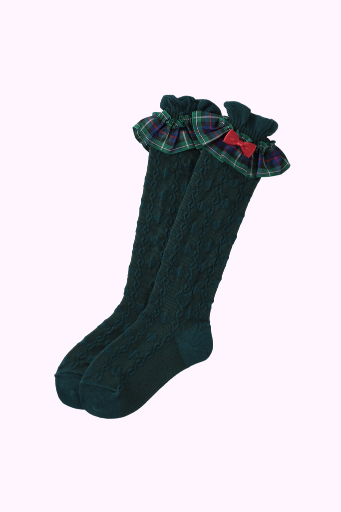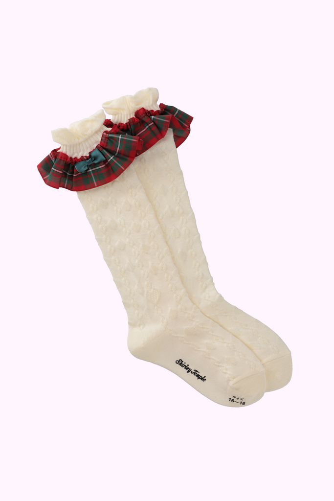温かみを感じるケーブル編み柄が冬らしいハイソックス