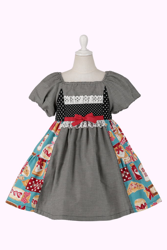 パッチワークで仕立てて、遊び心あるプリントのお洋服に生まれ変わりました!