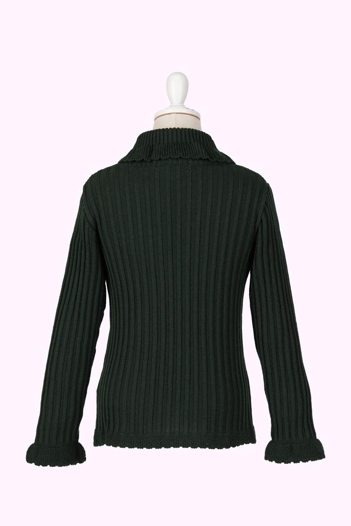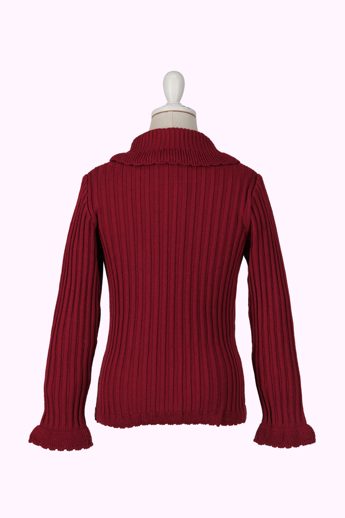 リブ×透かし編みで、1枚でも存在感があるデザインニットです