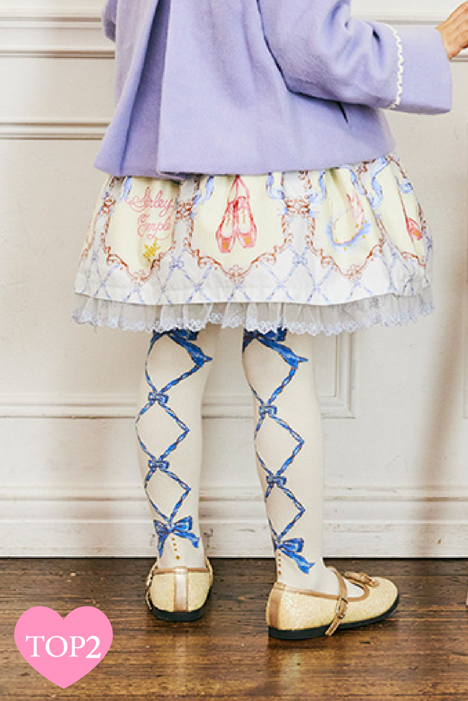 ふくらはぎ側にはキュートな編み上げリボン柄、