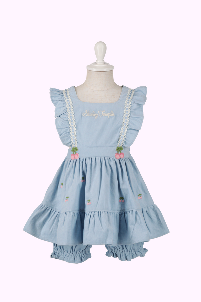 チェリー柄の刺繍がcuteなサロペットスカートは
