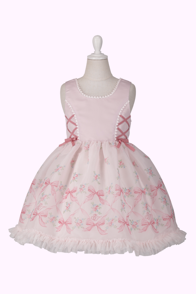 サイドのレースアップリボンがポイントのドレッシーなジャンパースカートです